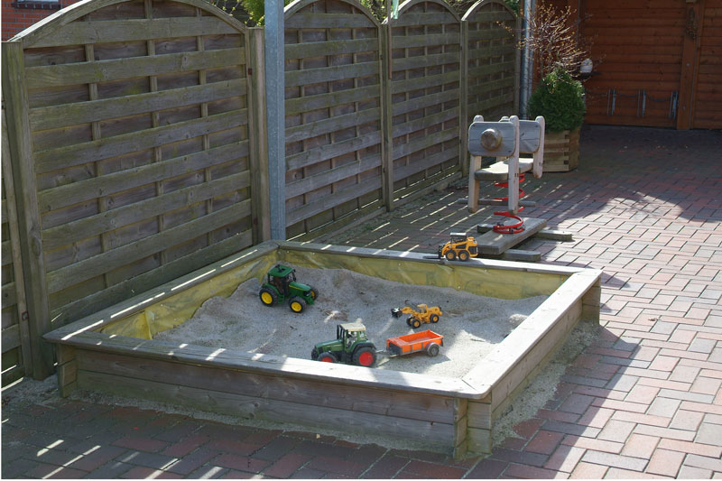 Im Außenbereich steht Ihnen ein schön angelegter Garten, ein Sandkasten für die Kleinen sowie eine überdachte Sitzecke mit Grillmöglichkeit zur Verfügung.